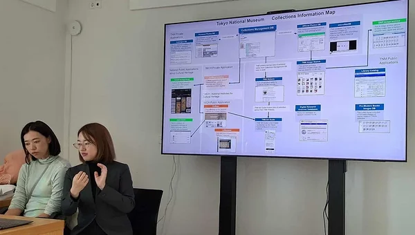 Kohtumisel vahetati kogemusi, kuidas digitaalset pärandit kasutatakse eri riikides, tutvuti erinevate muuseumide infosüsteemidega ning külastati ERMi näituseid just digitaalsete lahenduste kontekstis. Tokyo Rahvusmuuseumi kolleegid tõid esile eriti suurt vabadust ja paindlikkust, millega ERM oma pärandit külastajatele ja kasutajatele pakub.